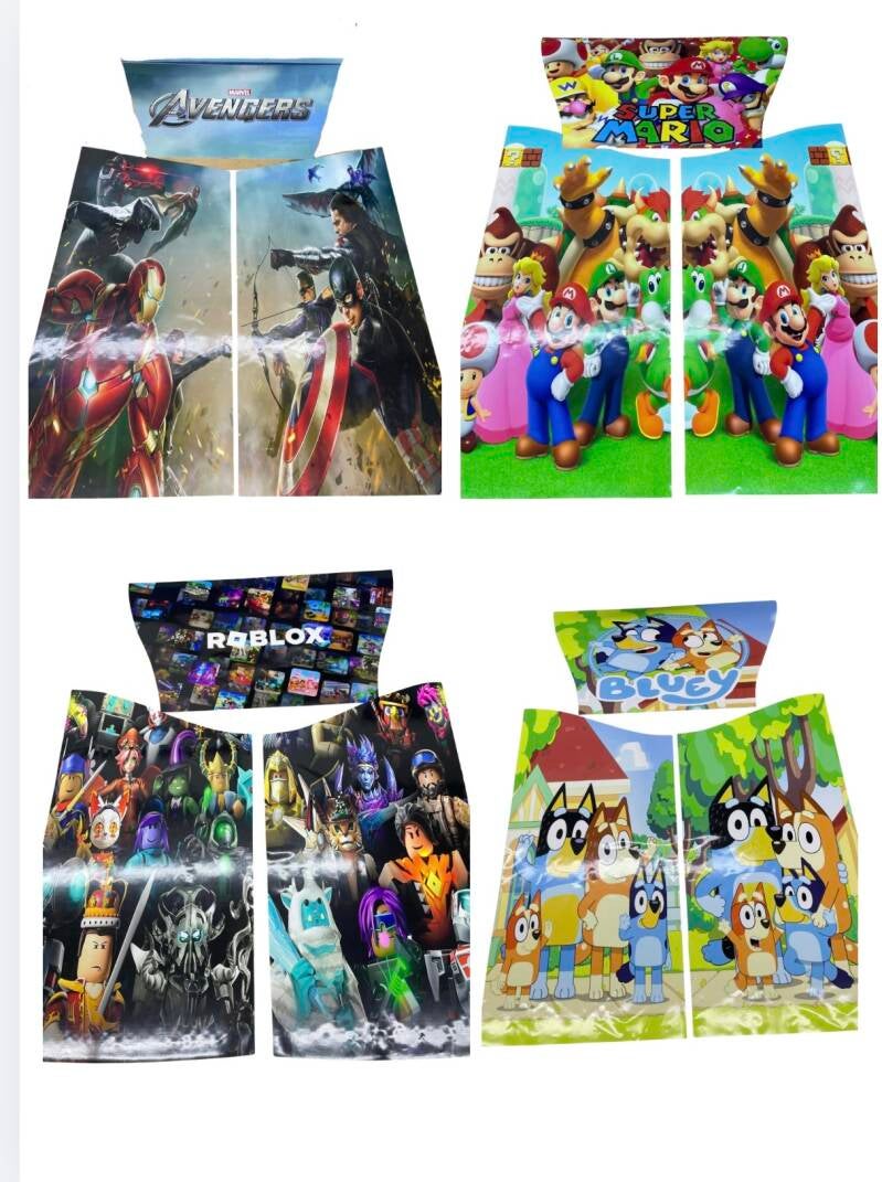 All of the following images are artworks that fit our red and blue Velcro bouncy castle, pastel Velcro castle and our red and blue Velcro castle with side combo. You can pick any of the themes we have to offer!